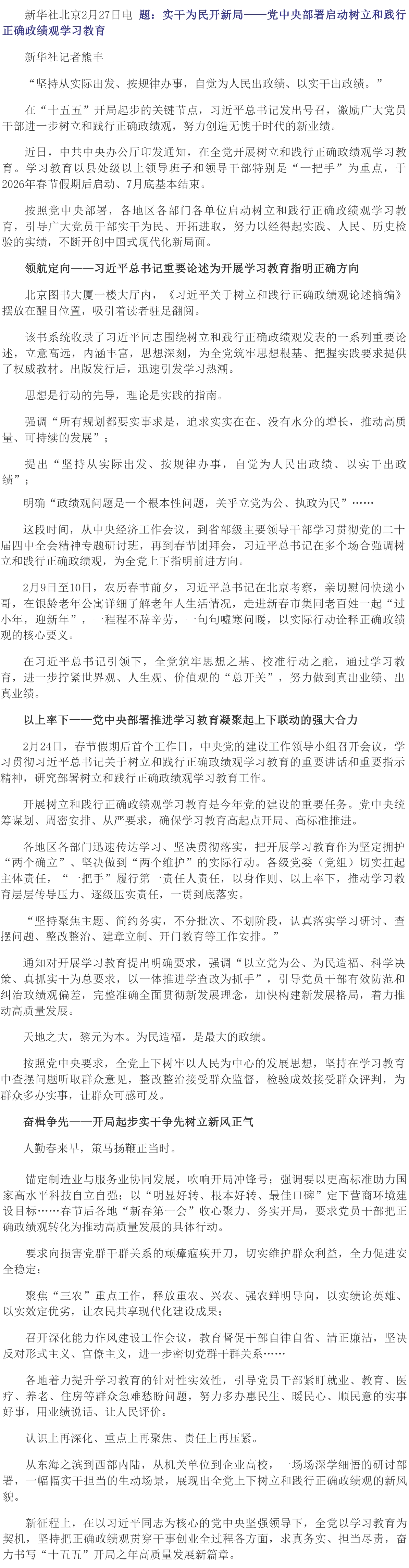 實(shí)干為民開新局丨黨中央部署啟動(dòng)樹立和踐行正確政績觀學(xué)習(xí)教育