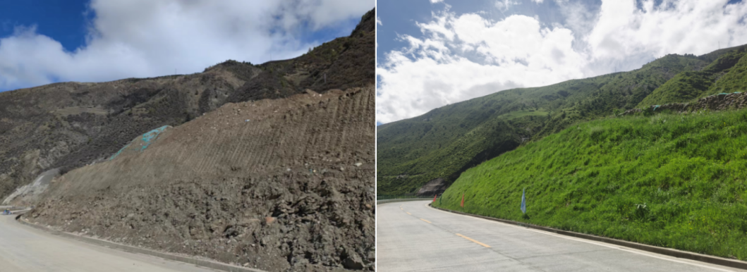 JD電站進場道路周邊生態(tài)修復前后情況對比