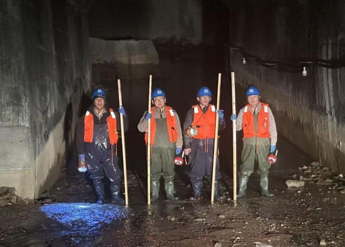 12月3日,公司組織對(duì)全長(zhǎng)16.3公里的灌溉輸水洞開展全面檢查,重點(diǎn)排查長(zhǎng)期運(yùn)行中可能存在的凍融破壞、巖體應(yīng)力變化等隱患。經(jīng)細(xì)致檢測(cè),輸水洞整體運(yùn)行狀態(tài)良好,完全滿足今冬明春供水需求,為后續(xù)灌溉工作奠定了堅(jiān)實(shí)的安全基礎(chǔ)。