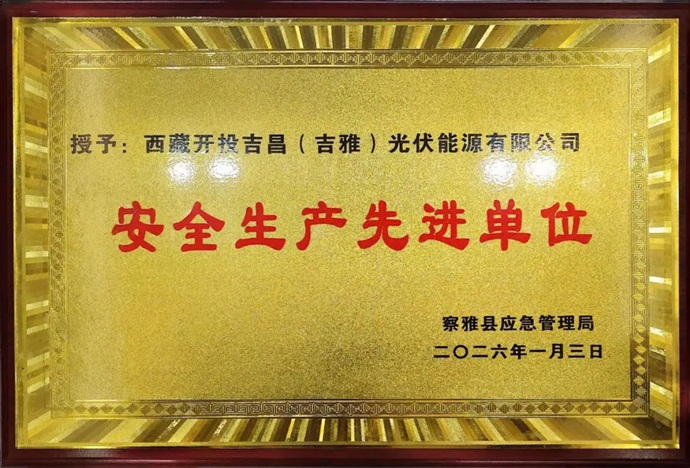 近日,西藏開投吉昌(吉雅)光伏能源公司被察雅縣應急管理局授予“安全生產(chǎn)先進單位”榮譽稱號。