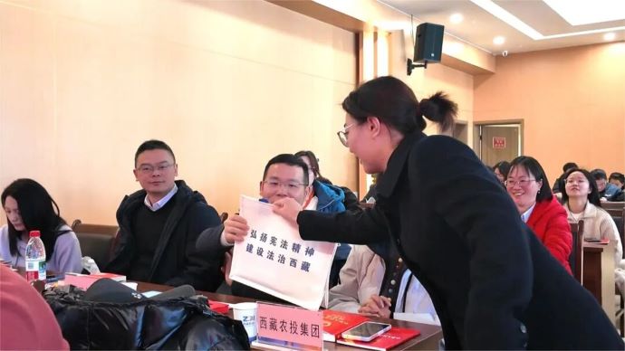 活動(dòng)現(xiàn)場(chǎng),一系列內(nèi)容豐富、形式新穎的環(huán)節(jié)有序開展。參會(huì)人員集中觀看了憲法精神主題影片及“憲法進(jìn)企業(yè)”主題紀(jì)錄片,直觀感受憲法的崇高權(quán)威與實(shí)踐力量;活動(dòng)特邀西藏歐珠律師事務(wù)所律師歐珠永青作《憲法》專題講座,深入淺出解讀憲法核心要義與依法治企實(shí)踐路徑,充分闡釋了新時(shí)代《憲法》的新發(fā)展,引發(fā)廣泛共鳴;憲法趣味有獎(jiǎng)問答互動(dòng)環(huán)節(jié)氛圍熱烈,有效調(diào)動(dòng)了干部職工學(xué)法用法的積極性;活動(dòng)還設(shè)置了現(xiàn)場(chǎng)法律咨詢環(huán)節(jié),幫助干部職工解決工作生活中遇到的法律問題,號(hào)召大家爭做“學(xué)法先鋒、守法模范、用法表率”。